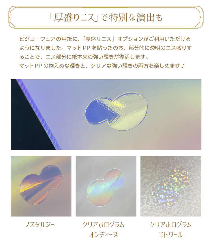 「ビジュー(bijou)=宝石」のように輝く魅惑の特殊紙・加工がご利用いただけます