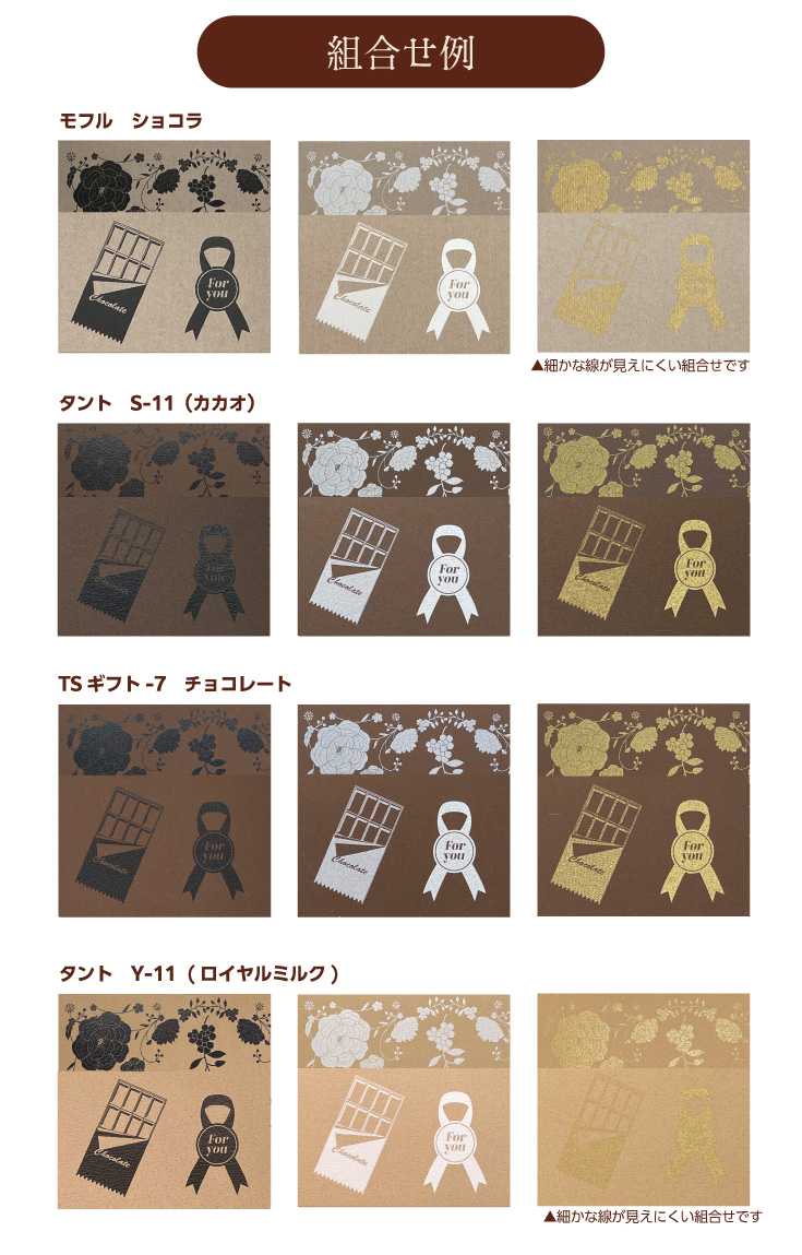 - ・箔押しとの併用も可能ですが、デザインによって再現度が大きくかわり、