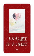 | フェア内容 | トムソン加工オプションの「ハート」利用なら、オプション価格から5%OFF! |