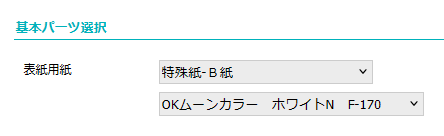 2.「表紙用紙」欄で「特殊紙 B紙」「OKムーンカラー ホワイトN F-170」を選択してください。