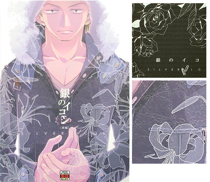 - 作家賞を頂き、ありがとうございます。同人誌は商業誌とは違い自分で一から作る事ができます。本を手に取る、という事はデータ・ネットが普及しても変わらない価値のあるもので、手に取って下さった読み手さんだけの特権だと思います。私は内容を決めた後に装丁を考える事が多いのですが、表紙は勿論、中の物語を読んで下さった上で理解していただける工夫を本文に施す事が多いです。『銀のイコン』では遊び紙として入れている特殊紙に銀のカラーインクと銀の箔押しを、表紙は他社さんでは断られるような紙にマットPPを貼り内容に合わせて聖書のような雰囲気を出しました。先述の通り手に取った人にだけしか伝わらない装丁です。