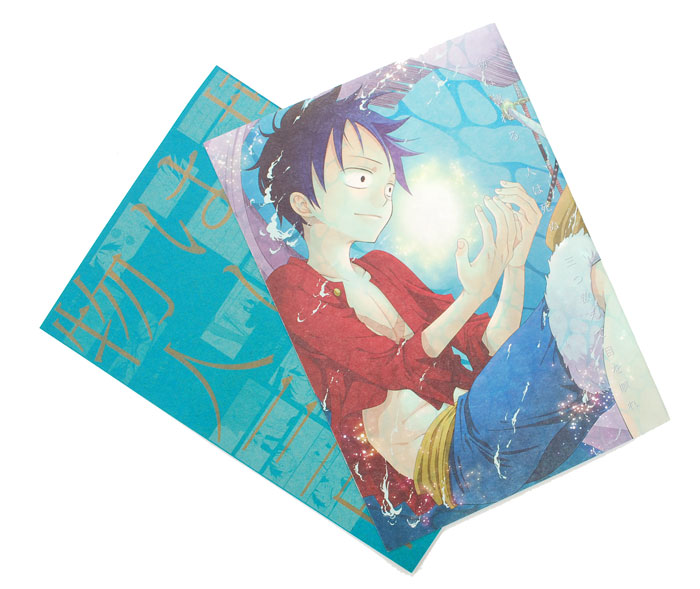 (2)は海の中を意識した仕様。水の泡をイメージした厚盛りニス、見返しの彩雲、中央の見開きの2色刷り、その統一性を評価しました。