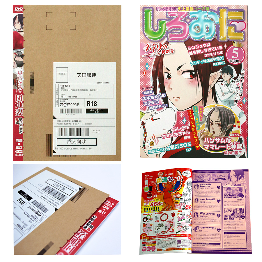 この度は準大賞を頂き、誠にありがとうございます。 「昼下がりの団地妻」はアダルトビデオをテーマにした3人の合同誌ということで、やるならとことんネタを詰め込もうという意気込みで、DVDのパッケージや通販の梱包等を本で再現しました。表紙は梱包をやぶった時のイメージで切り取り線のトムソン型を作り、中扉を少し見えるようにしました。当初は白インクを考えていた表紙の宛名部分も、緑陽社さんに実際のシールにしてはどうかという提案をいただき、とてもリアルな仕上がりになりました。作る側も読む側も楽しめる一冊になったと思います。