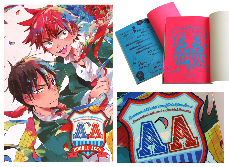 『AA-DoubleAce!!』の表紙はスペシャリティーズホログラムNo.750。300頁の本にふさわしい紙の厚み=0.41m!です。 同人誌でスタンダートなPP貼カラーの紙の2倍!の厚さです。このホログラムの揺輝な光に色彩られた美麗にして堅牢な器(表紙)の中に織りなす青と赤の世界、36人の作家が集った大作です。