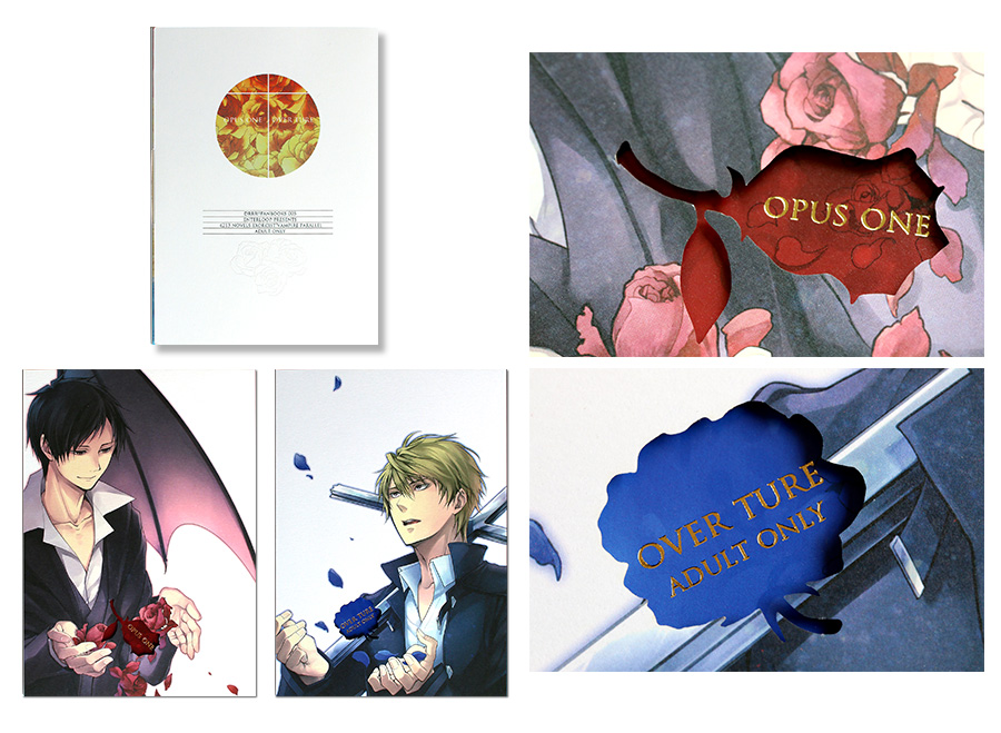 - 2冊の冊子はいずれも対となるように、青と赤、つぼみと満開の薔薇、渡すものと受け取るものといった深いテーマ性で統一されています。