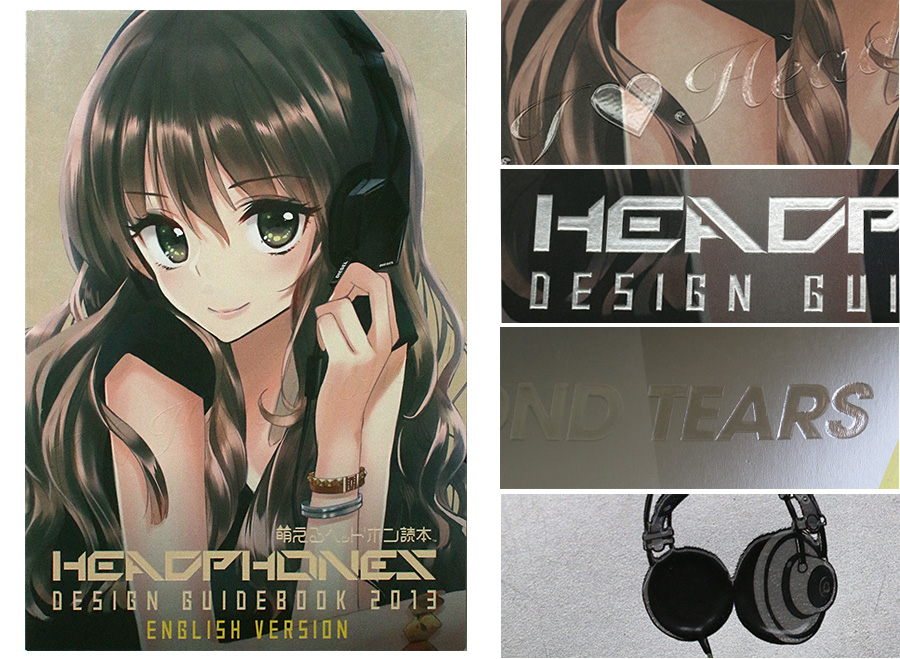センスがいいですね。溜息が出ます。表紙はアルグラスという銀色のピカピカの紙に易接着マットを貼って、艶消し状態にしています。その上に何ケ所かの文字の上に高透明ニスを厚盛りしているのです。こうするとその文字の部分から地のアルグラスの輝きが蘇る!あたかも艶のある銀箔を打ったように、又、バーコ加工のように。いやいやそうではない!「え? これ何?」という見たことのない加工がそこに出現しているのです。もちろんこれは計算した上での加工です。 装丁ではありませんが本文の写真とデザインも素晴らしい。ヘッドホンの金属の、皮の、プラスチックの存在感が萌えるべき価値のあるものとして紙上に魅惑的に蘇っています。 しっかりとした美意識、それを表現できる知的なスキル。尊敬いたします。