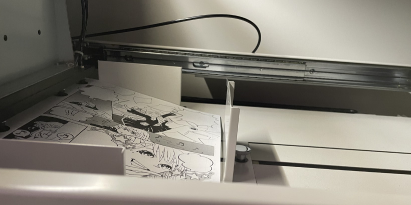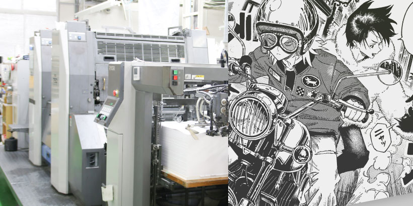 スミ刷り本文は、コミックや小説に適したAM150線/FM10μ印刷を採用しています。多くのモアレを回避できるFM印刷により、安定した仕上がりを実現します。