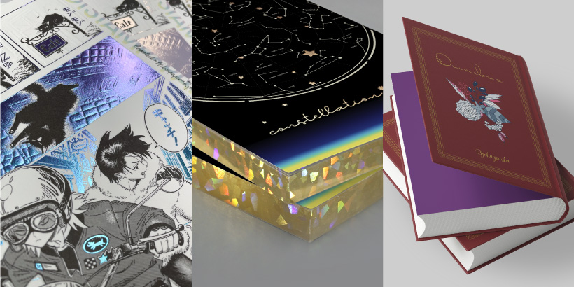 常時50種類以上の豊富な特殊加工の中から、お客様だけの特別な一冊をつくることができます。