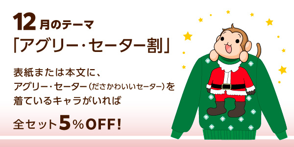 表紙または本文に、アグリー・セーター(ださかわいいセーター)を着ているキャラがいれば 5%OFF!